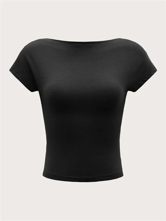 Women's O-neck Backless T-shirt Short Sleeve Solid Color Crop Top Summer Cute Baby Tee Y2K Clothes Bodycon Tunics Fashion Tank